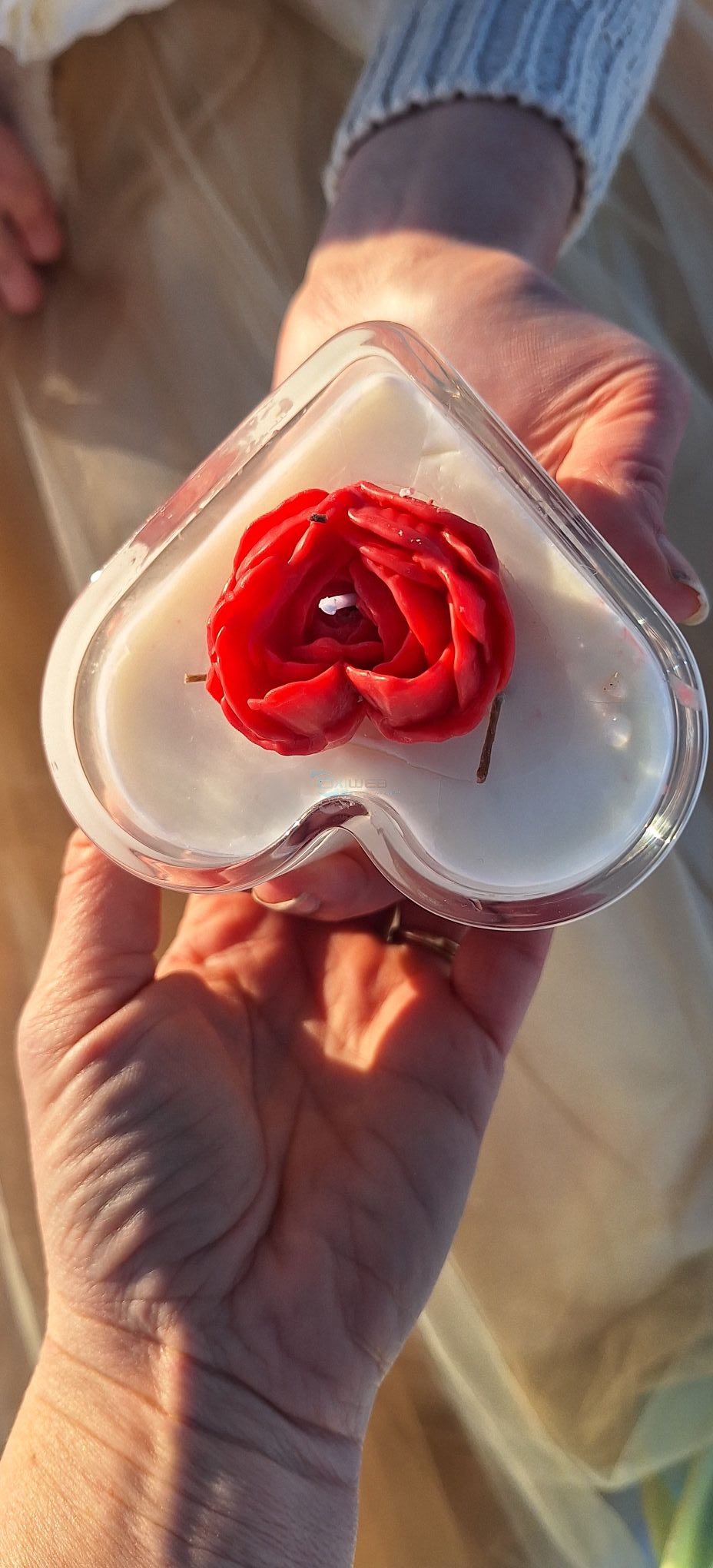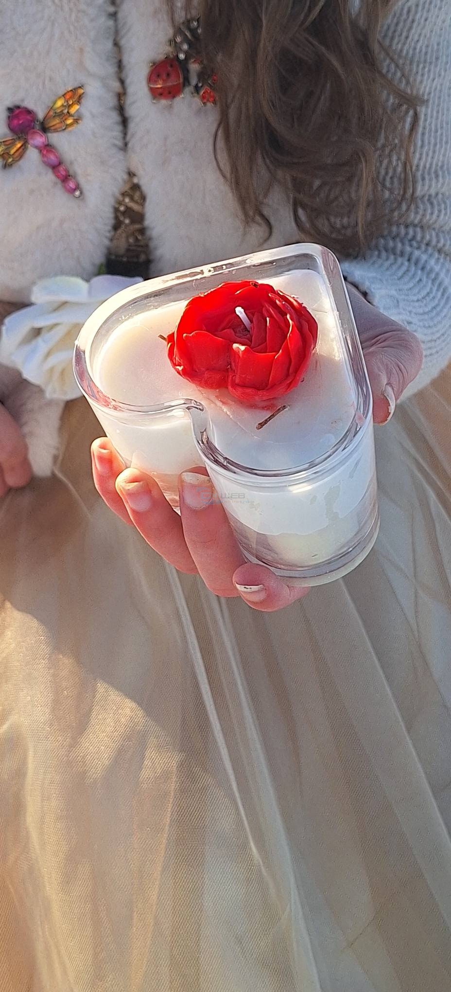 Exkluzívna sójová sviečka v dizajnovom skle – Vôňa ruže v srdci